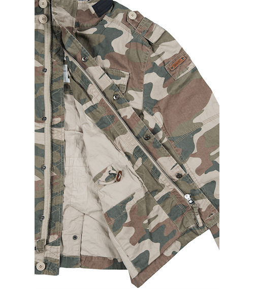 • Jedinečná kvalita příjemně měkkého bavlněného materiálu a důraz na pečlivé zpracování jsou pouze dva z mnoha faktorů, které tuto bundu ve stylu polních kabátců ozvláštňují. Dalšími zajímavými prvky jsou projmutý střih, výrazné prošívání (v pasové linii záměrně nerovnoměrně zdvojen), úmyslně pomačkáné klopy kapes, kožená nášivka s logem firmy na rukávu (pouze velikosti S-XXL), nárameníky a zcela výjimečné provedení zvýšeného stojatého límce, který v sobě ukrývá lehkou kapucu.