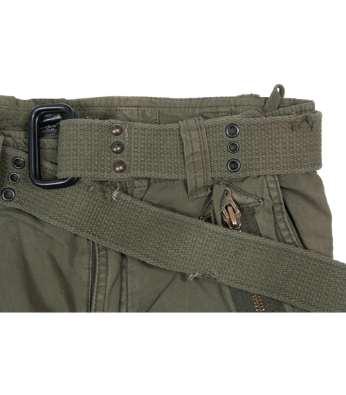 • Součástí je textilní opasek se zapínáním pomocí dvou kovových průvleků. Textilní opasek je ve "Vintage" úpravě (mírné, uměle vytvořené poškození, které se dál nešíří). Kovová očka po obvodu opasku zvyšují pevnost opasku a umožňují zafixovat součásti výstroje.