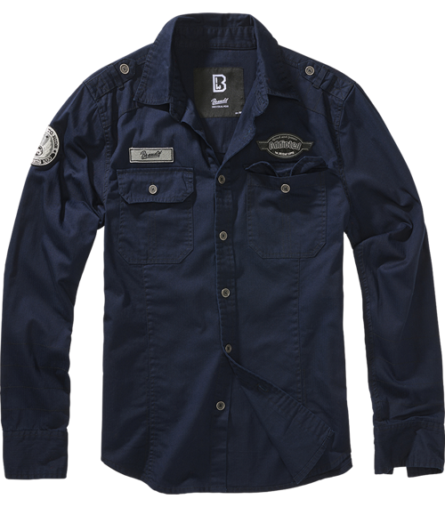 Volnočasová elegantní košile s dlouhým rukávem. Zhotovena z lehčího, ale pevného bavlněného materiálu mírně opraného vzhledu. Klasický střih a doplňky odkazující ke stylu vojenských košil z ní dělají ideální chlapskou košili, ve které ve městě rozhodně vyniknete