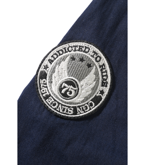 • dekorativní doplňky v podobě tří nášivek (dvě na hrudi nad kapsami, jedna na pravém rukávu, metalický vzhled)